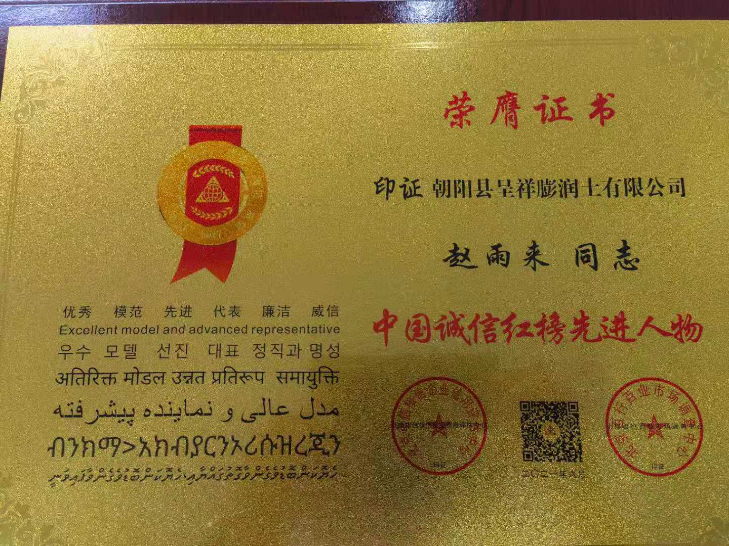中國(guó)誠信紅榜先進(jìn)人物
